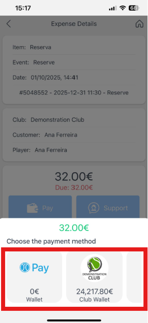 4.1 At this stage, you can view all payment methods accepted by the club or organization.